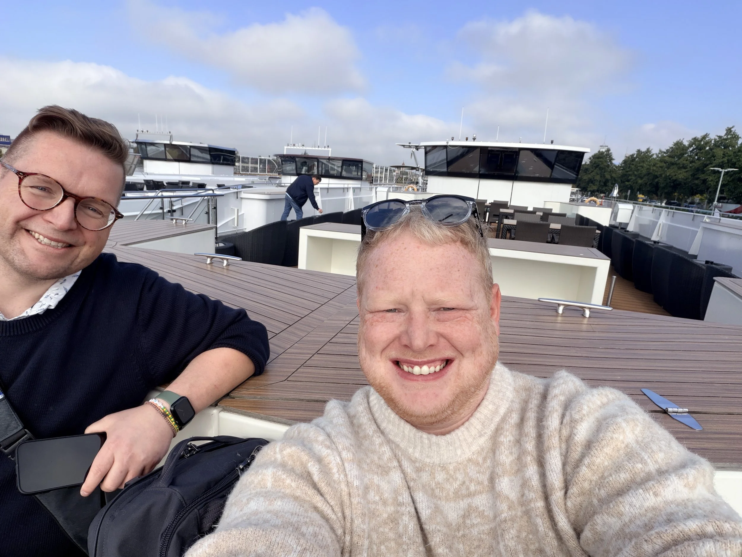 Matt and Josh on the sundeck of the MS Geoffrey Chaucer